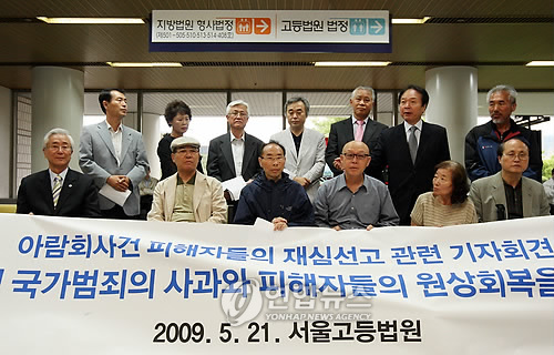 ÇÑÆí ¾Æ¶÷ȸ »ç°Ç ÇÇÇØÀÚµéÀº 2000³â 4¿ù26ÀÏ Àç½ÉÀ» û±¸Çß´Ù. À̵éÀº 2001³â 10¿ù 16ÀÏ¿¡ À̾î 2003³â 11¿ù 19ÀÏ ¼¿ï°íµî¹ý¿ø¿¡ ½Å¼ÓÇÑ ÀçÆÇÀ» Ã˱¸ÇÏ´Â Àǰ߼¸¦ Á¦ÃâÇß´Ù.