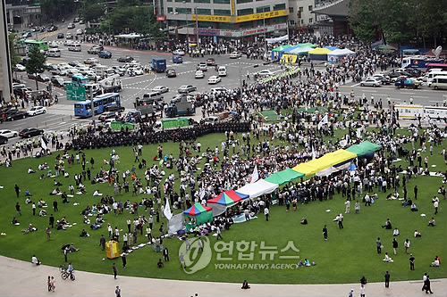 ÆòÅë»ç´Â 6¿ù 16ÀÏ ±¤È¹® KT ¾Õ Àεµ¿¡¼ 50¸íÀÌ Âü¼®ÇÑ °¡¿îµ¥ ¹Ý¹ÌÁýȸ¸¦ ¿°Ú´Ù°í ½Å°í¼¸¦ ³ÂÀ¸³ª °æÂûÀº KT±¤È¹®Áö»ç°¡ °°Àº ³¯ `»óǰȫº¸ ¹× ȯ°æÄ·ÆäÀÎ'À» °³ÃÖÇÏ°Ú´Ù°í ¸ÕÀú ½Å°íÇß´Ù¸ç `Àå¼Ò °æÇÕ'À» ÀÌÀ¯·Î Áýȸ¸¦ ±ÝÁöÇß´Ù.