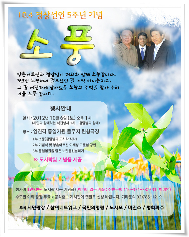 | [÷¸¾´ÔÂü¼®]10.4 ³²ºÏÁ¤»óȸ´ã 5Áֳ⠱â³äÇà»ç¿¡ ÃÊ´ëÇÕ´Ï´Ù!